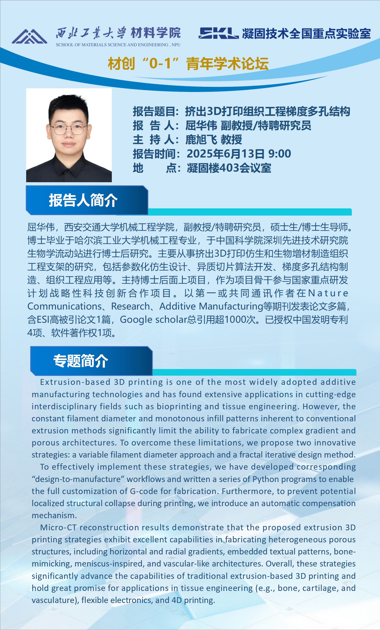 材创“0-1”青年学术论坛:挤出3D打印组织工程梯度多孔结构