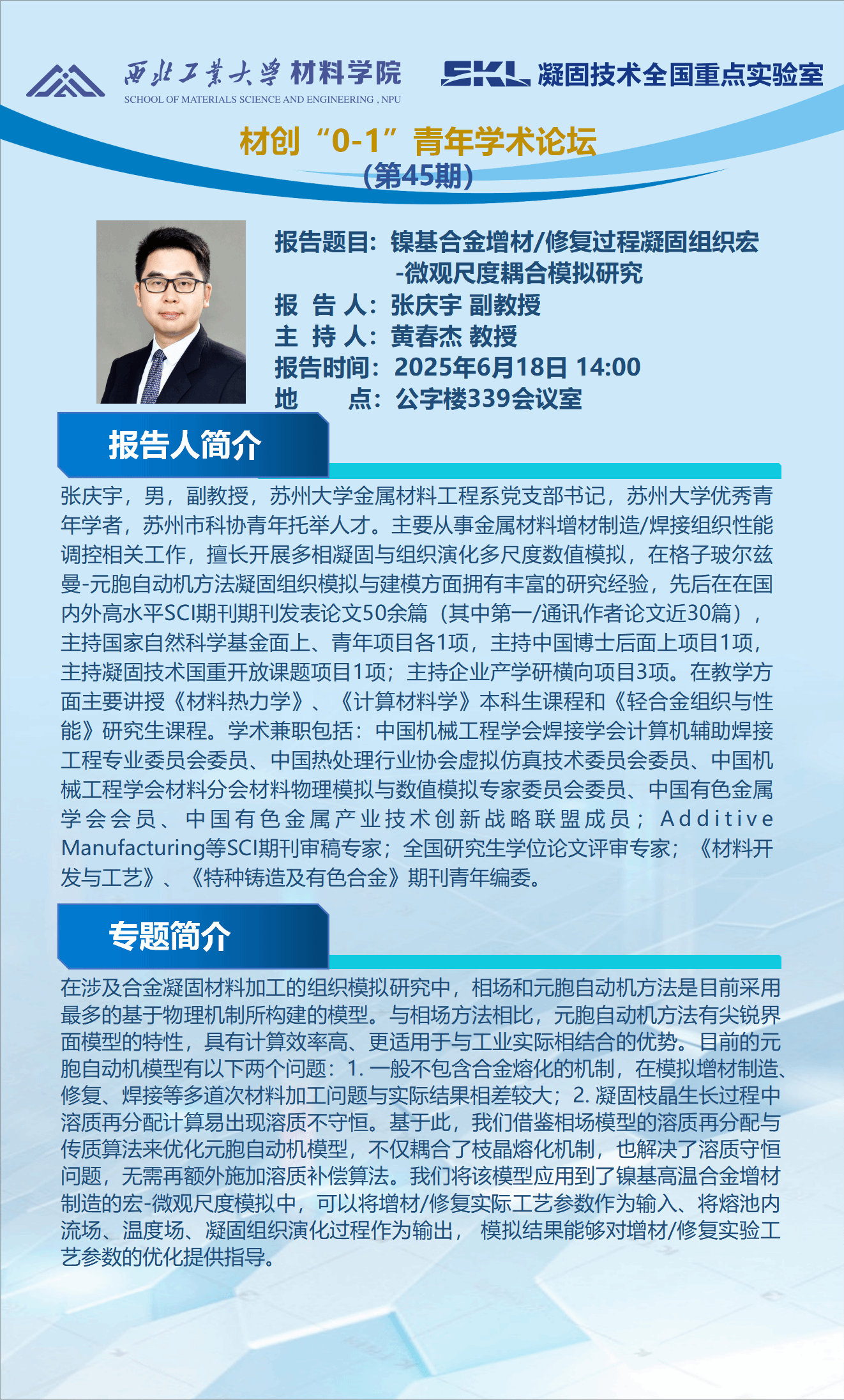 材创“0-1”青年学术论坛:镍基合金增材/修复过程凝固组织宏-微观尺度耦合模拟研究