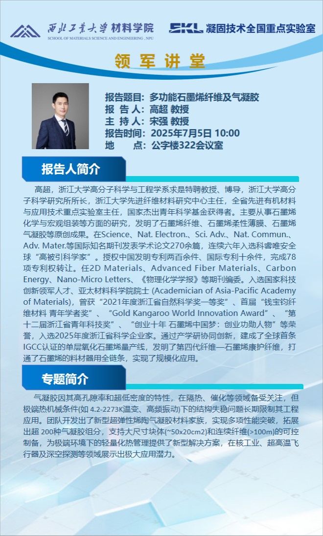 领军讲堂:多功能石墨烯纤维及气凝胶