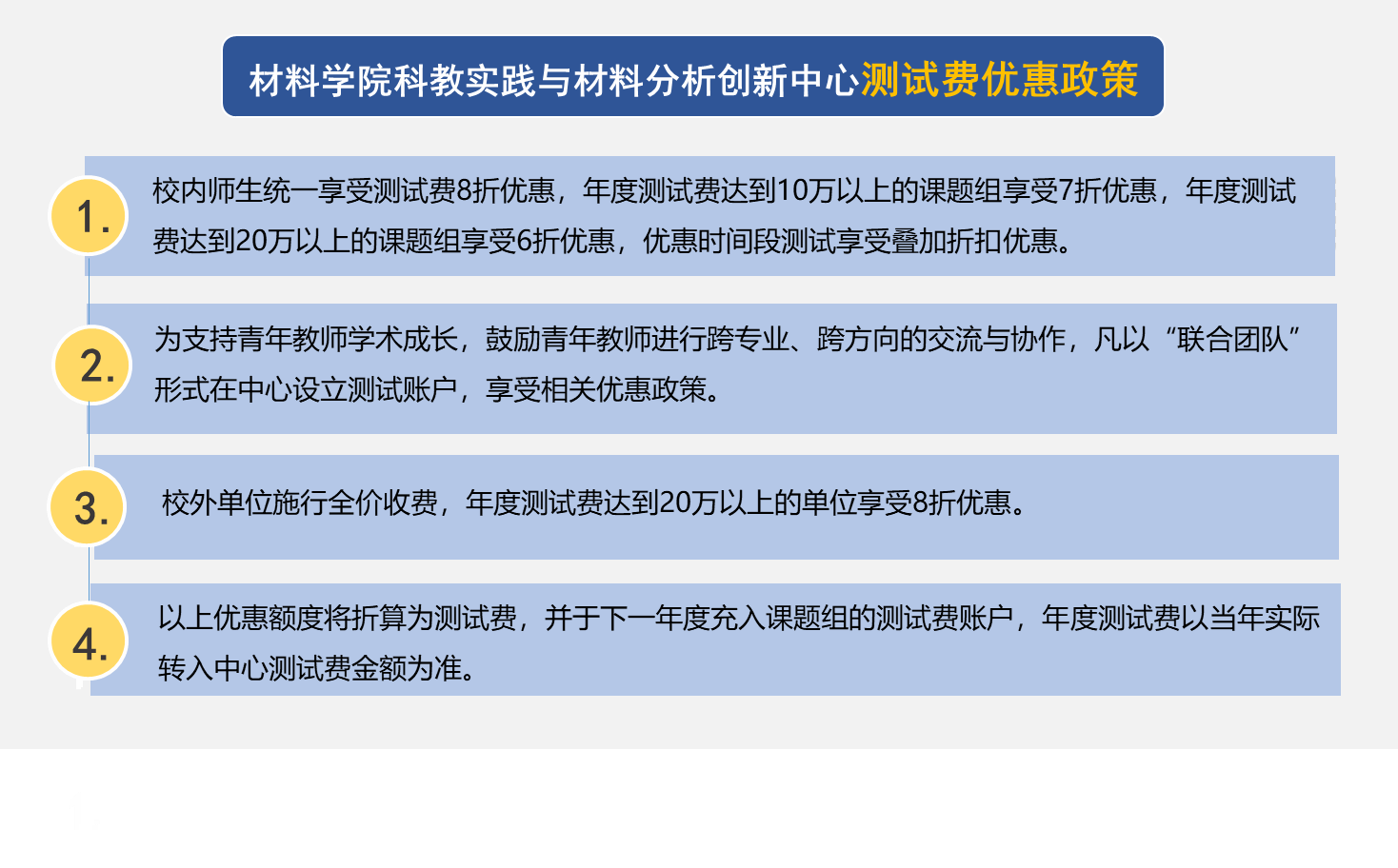 为进一步支撑“总师型”人才培养,大力推进“1→0”工程科学问题研究,奋力提升科学研究水平和社会服务能力,助力学校“127”发展目标和“天下工大、世界三航”远景目标实现,换妻 科教实践与材料分析创新中心(陕西省材料分析研究中心)2024年度继续实施测试费优惠政策。自2019年至今,中心已连续六年实施测试费优惠政策,累计发放奖励金额1325.88万元