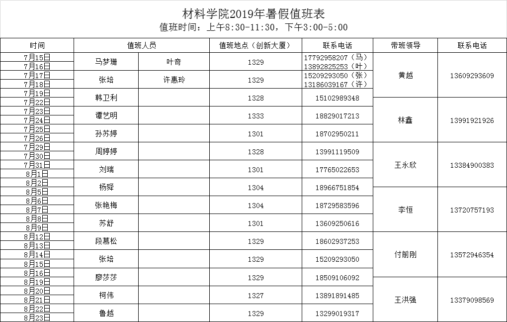 换妻 2019年暑假值班表
